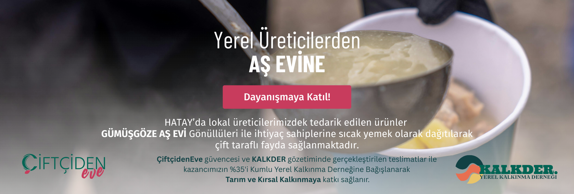 "Çiftçiden Aş Evine" kategorisindeki ürün veya paketlerden vereceğiniz tüm siparişlerDeprem bölgesinde Yerel Üreticilerimizden >> İhtiyaç sahipleri için gönüllü ve aktif olarak sıcak yemek dağıtan AŞ EVİNE gönderilmektedir.