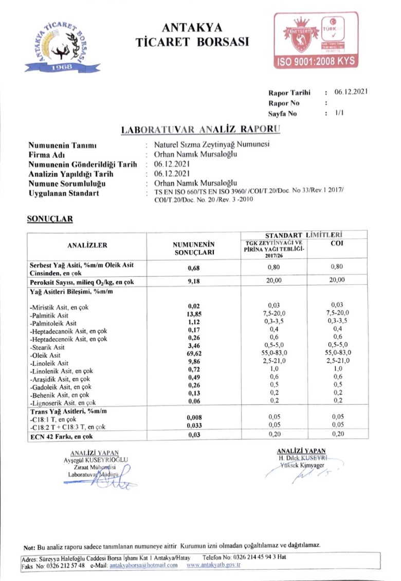 Daha sağlıklı ve lezzetli yemekler yapma arzusuyla 1999 yılında diktiği fidanlardan oluşan zeytin bahçesi emanetiyle Orhan Mursaloğlu anısını yaşatıyoruz.